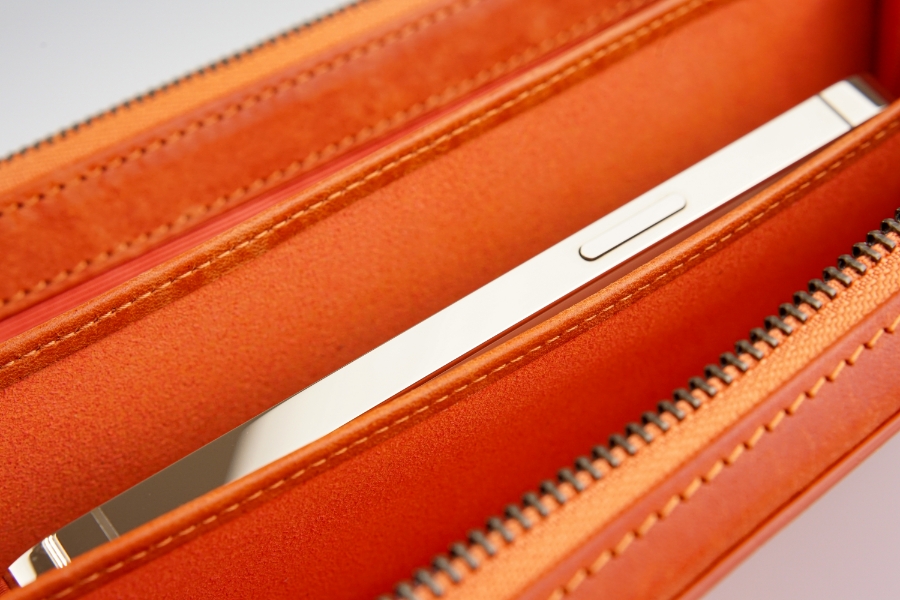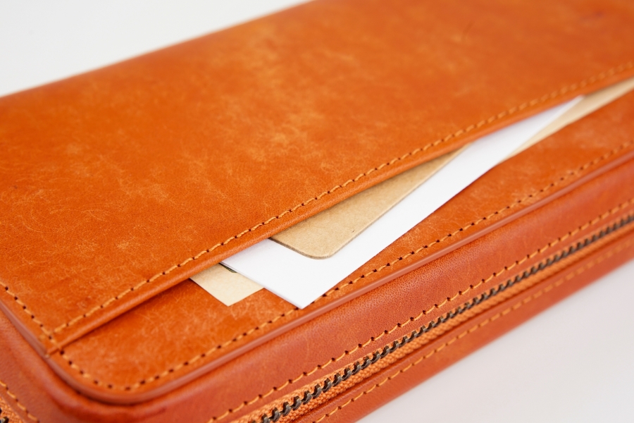 財布の構造上、マチの部分を別パーツで採ることは珍しく、製造の難易度も上がりますが、これによりたっぷり収納しても型くずれしにくい大容量を実現しました。