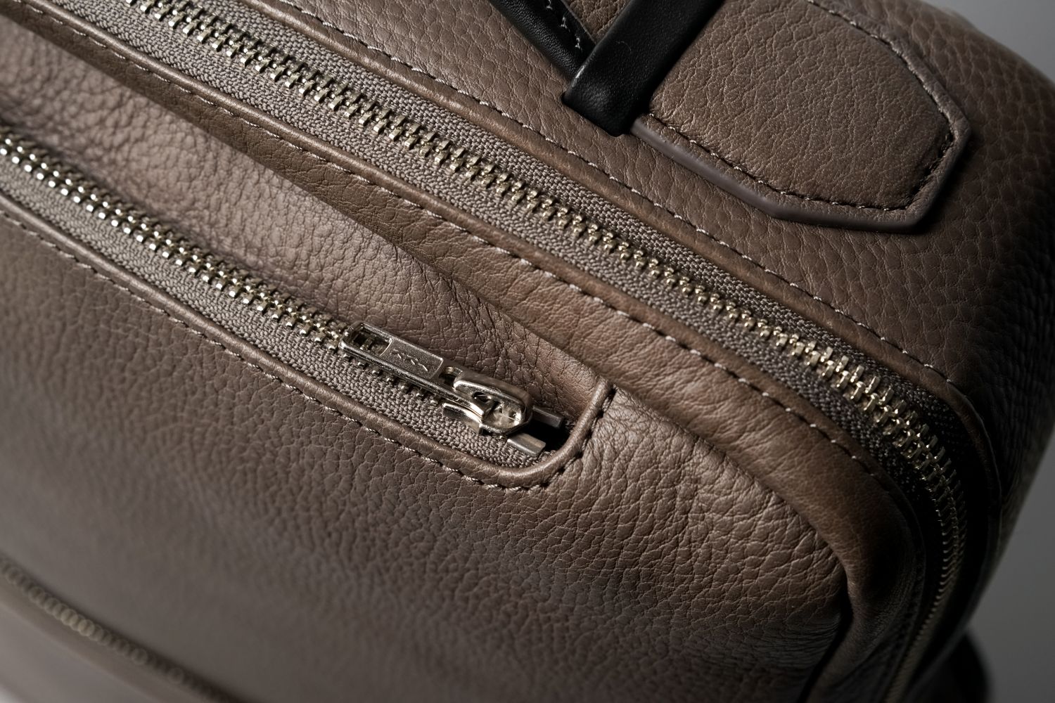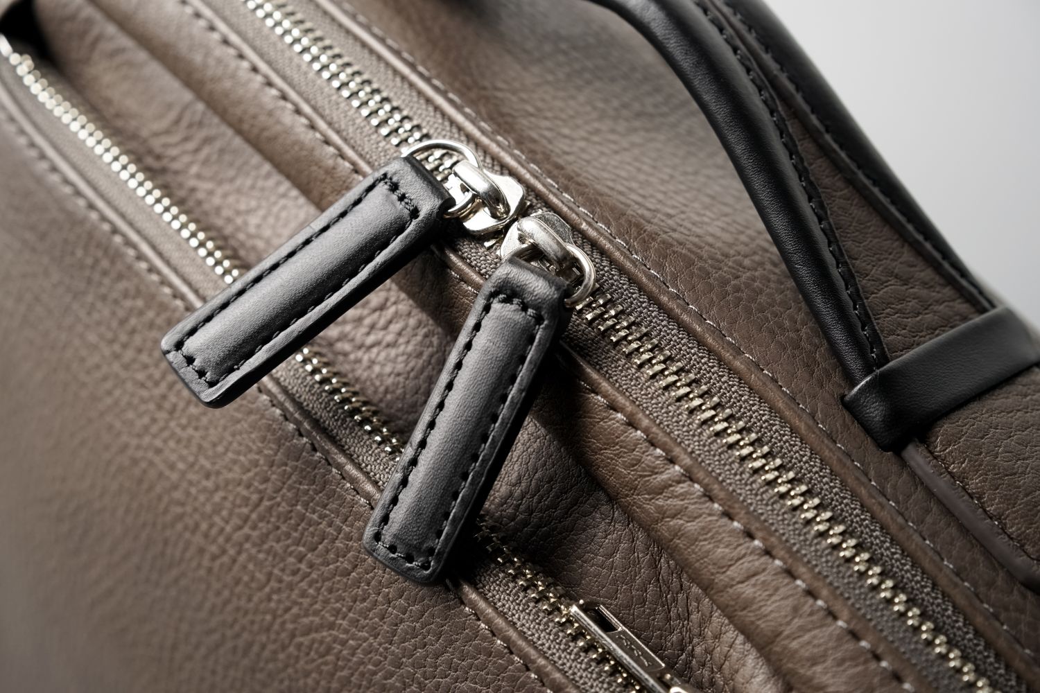 使うほどに手に馴染むヌメ革の引手。冬に手袋をしていても掴みやすい大きくて厚みのあるシンプルなデザインです。ファスナーは左右どちらにも開閉できる両開き仕様です。