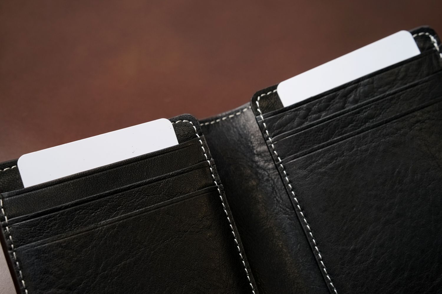 紙幣をさっと取り出せる札入れは、紙幣を二つ折りにして左右で仕分けたりカードを挟んだり、自由自在に使い方をアレンジ可能です。