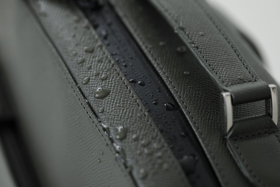 メインファスナーには止水テープを使用しており、水が中に漏れ入る心配はありません。大切な書類やノートパソコンを雨から守ります。