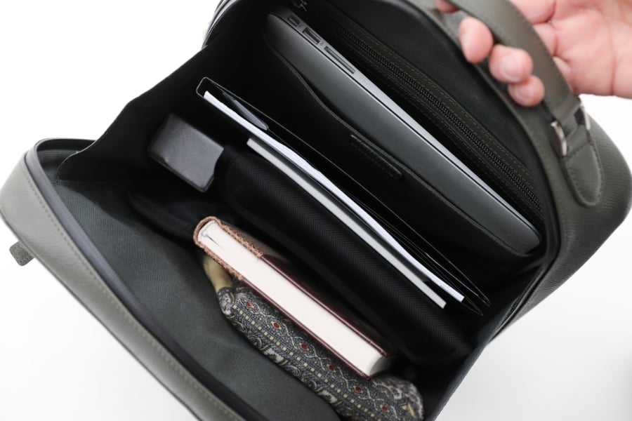 本体の側面にも持ち手があるため、ブリーフケースのように手持ちすることができます。目上の方と会う時や大切な商談など、背負ったままでは相応しくない場面でも安心です。ハンドルの収まりが良いため背負っていてもシンプルなデザインに仕上がっています。
